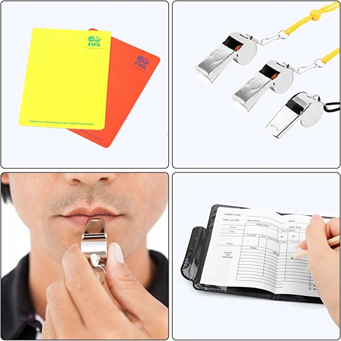 Наши судейские комплекты подходят для футбола, баскетбола, спортивных тренировок или других соревнований. Свисток также можно использовать для дрессировки собак, управления движением транспорта и вызова помощи на природе.