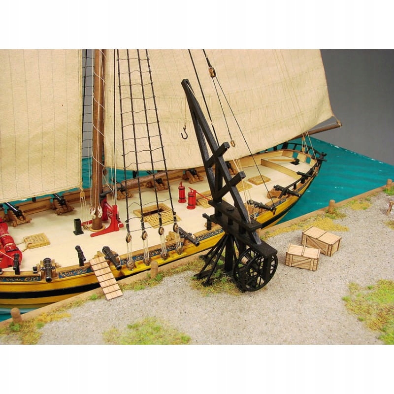 Верфь и портовый причал - Дувр 1777 Картонная модель № 34, вырезанная лазером. ML:064, масштаб 1:96. Размеры модели: высота: 14,5 см. ширина: 34,5 см. длина: 55,5 см. Модель, вырезанная лазером, включает в себя: все детали, вырезанные лазером, инструкции по сборке, шнурок. Модель для самостоятельной окраски. В комплект модели не входят: Искусственная растительность, песок и вода. и модель корабля «HMS Alert» из картонной модели № 50 или из набора для лазерной резки №. 1.