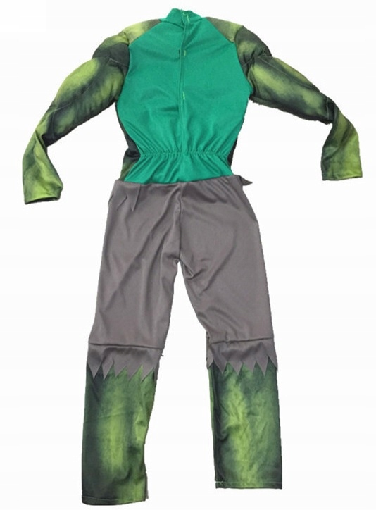 Цельный костюм Зеленого Халка. Хорошо сшит, слегка эластичен, застегивается на молнию. Благодаря нашему предложению каждый поклонник комиксов превратится в своего любимого героя. Интересный костюм перенесет вас в мир комиксов, который поможет вспомнить детство.