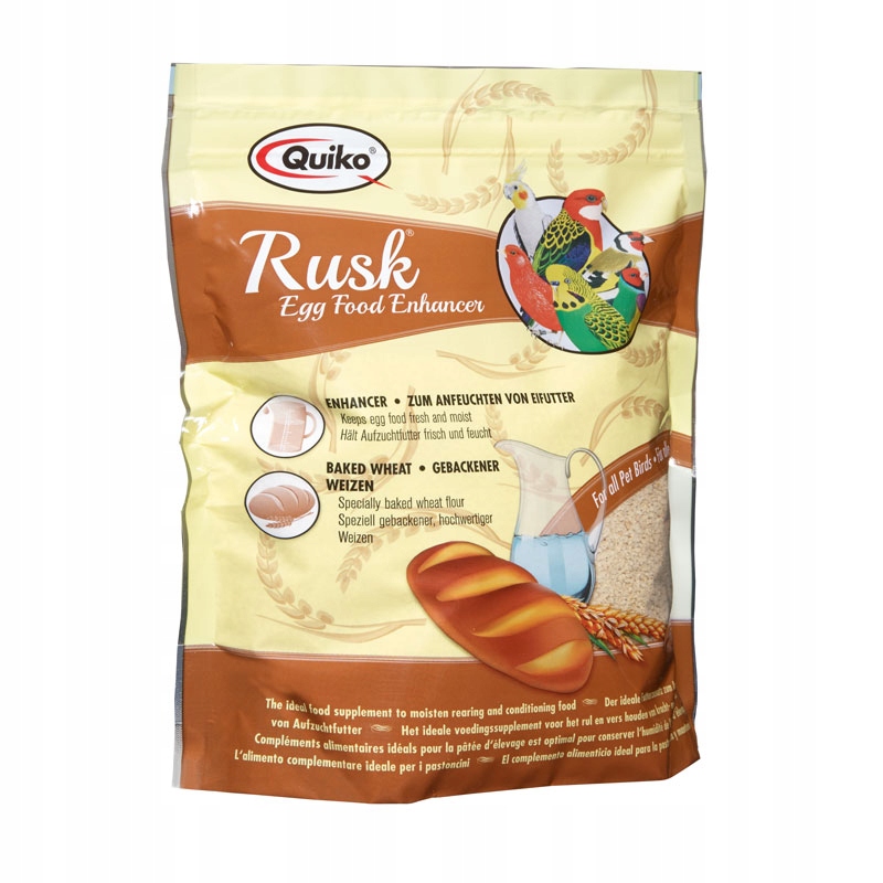 Прикорм, приготовленный из пшеницы, запеченной по специальной технологии, значительно повышающей ее впитываемость. Добавленный в основные продукты питания, он сохраняет их свежими и влажными. Он идеально подходит для смешивания добавок, таких как витамины, красители или лекарства. В пищу рекомендуется добавлять яйца, вареные яйца и проростки, особенно при выращивании молодняка.