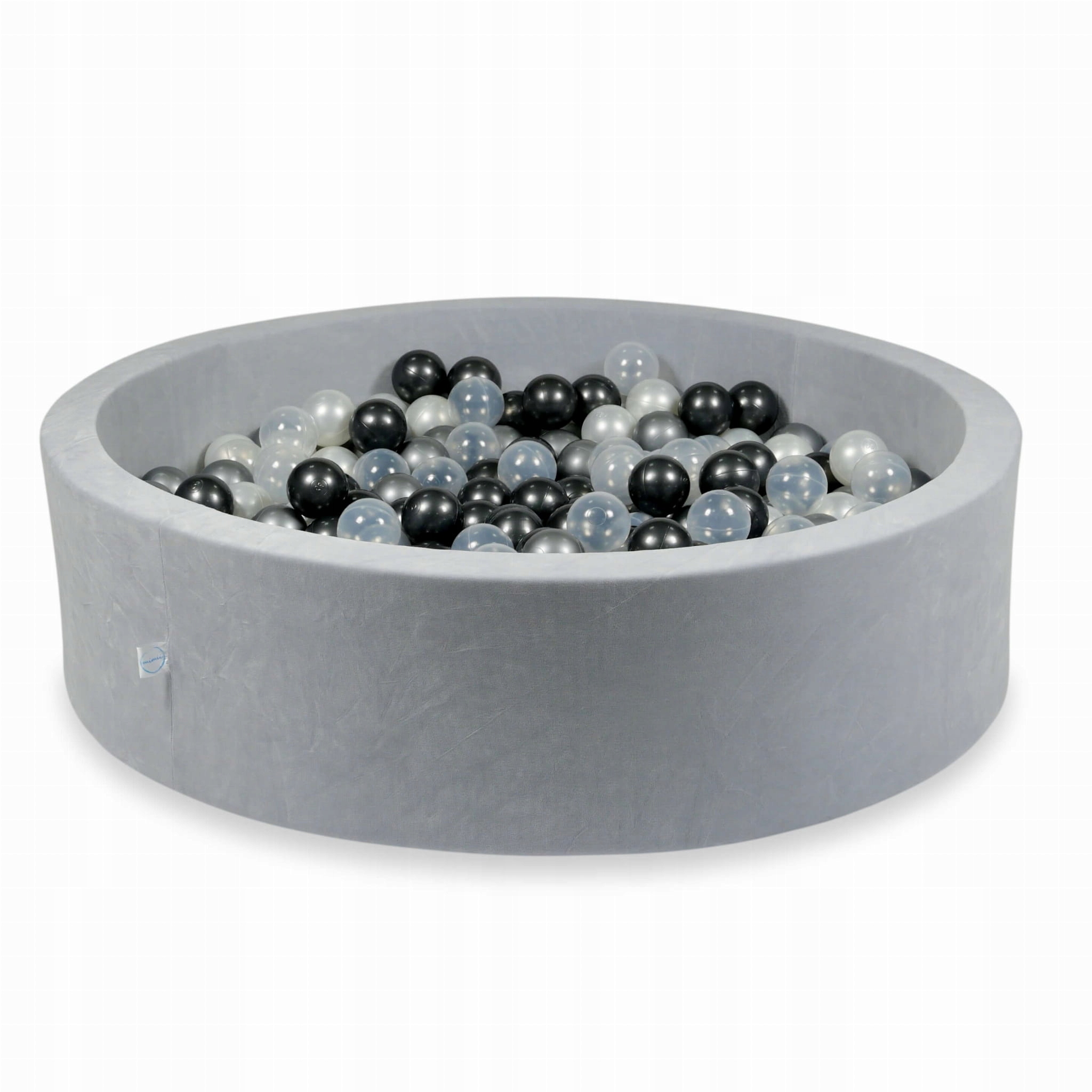 mimii: сухой бассейн бархатный мягкий светло -серый + шарики: жемчужина, прозрачный, металлический графит, серебро