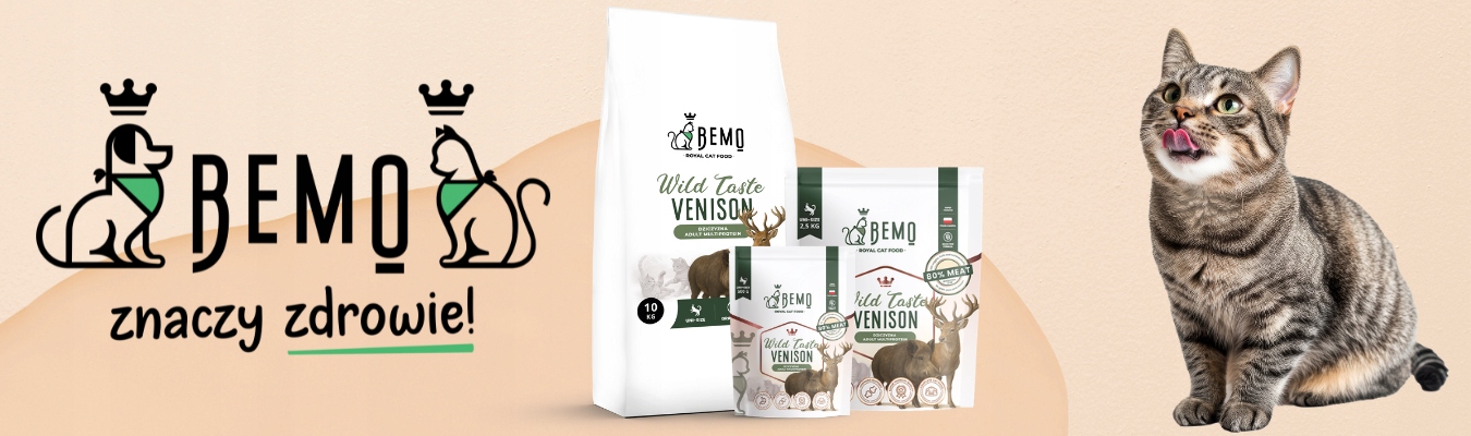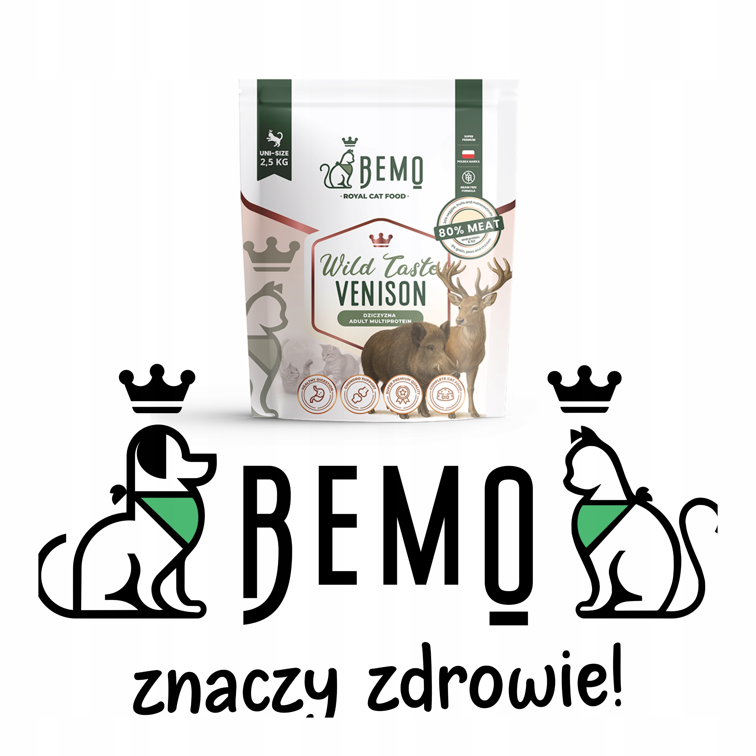 - Bemo Cat Wild Taste Venison - беззерновой, гипоаллергенный корм на основе дичи (кабана и оленя), богатый белком, железом и витаминами группы В; предназначен для чувствительных и аллергичных кошек.
