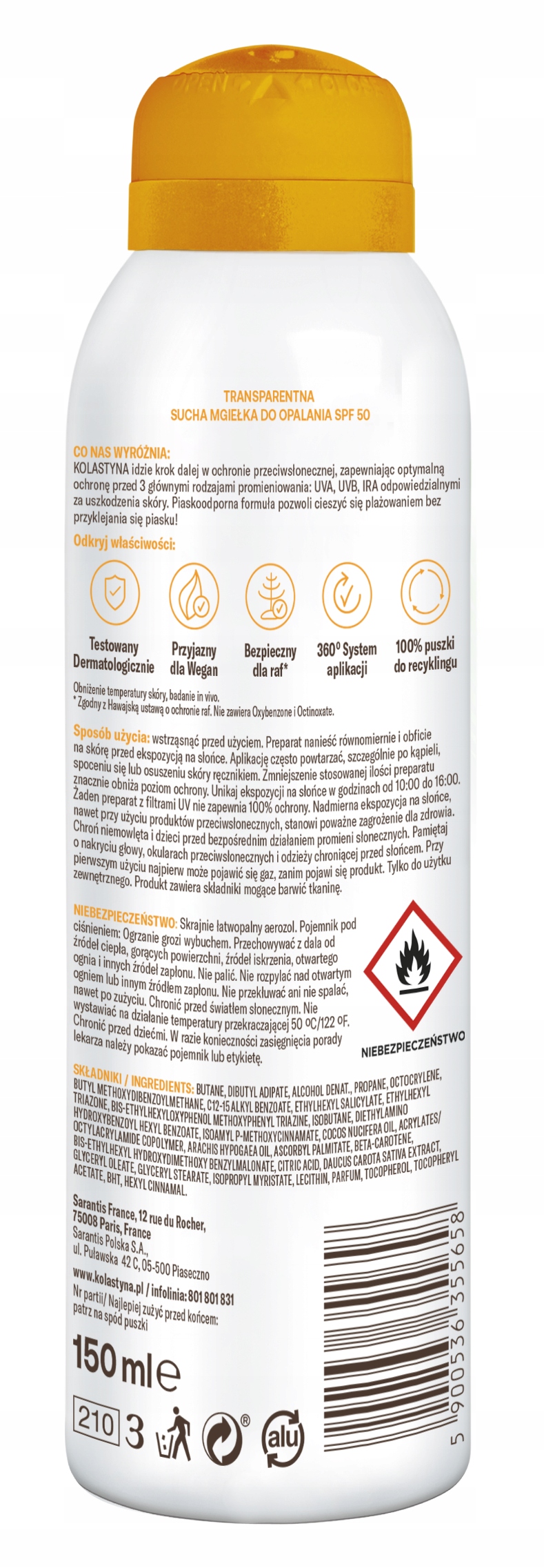 КОКОСОВЫЙ РАЙ КОЛАСТИНА Сухой защитный спрей SPF 50, 150 мл