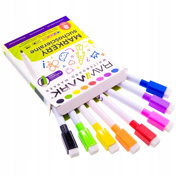 Забудьте о пыльном меле и оцените удобство работы с набором из 8 сухостираемых маркеров.