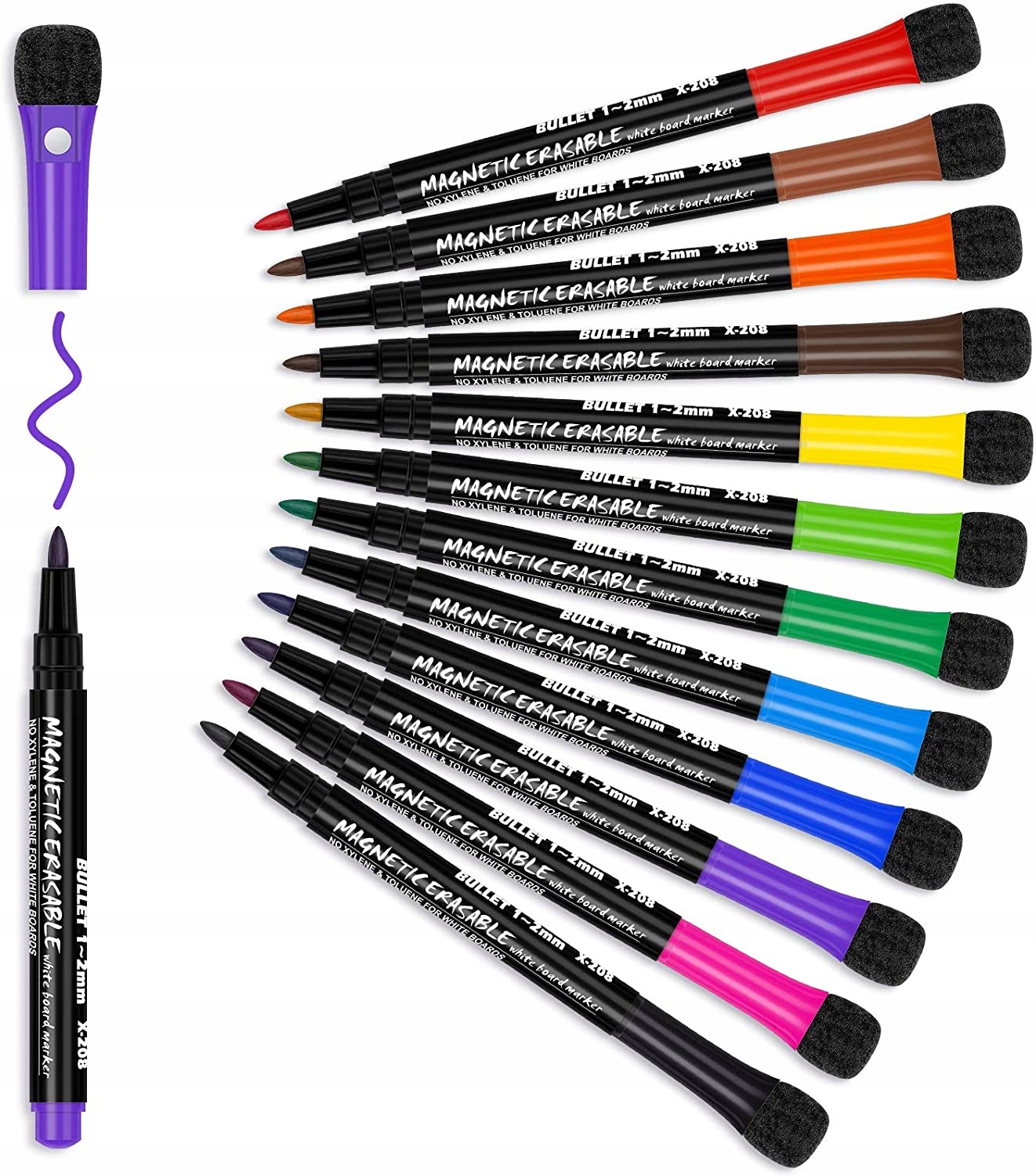 12 цветов маркеров для белой доски, моющиеся, магнитные маркеры для сухого стирания.