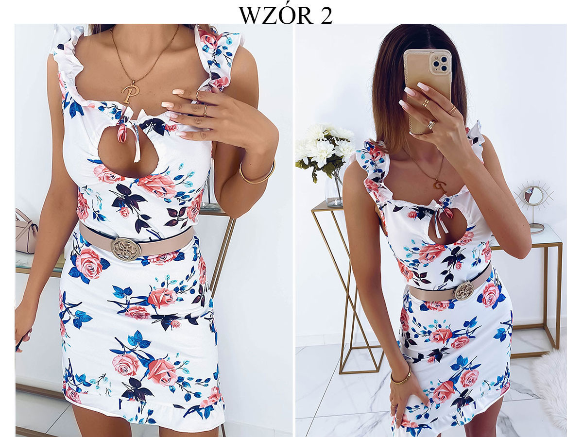 SUKIENKA DOPASOWANA STYLOWA WIĄZANY DEKOLT WZORY
