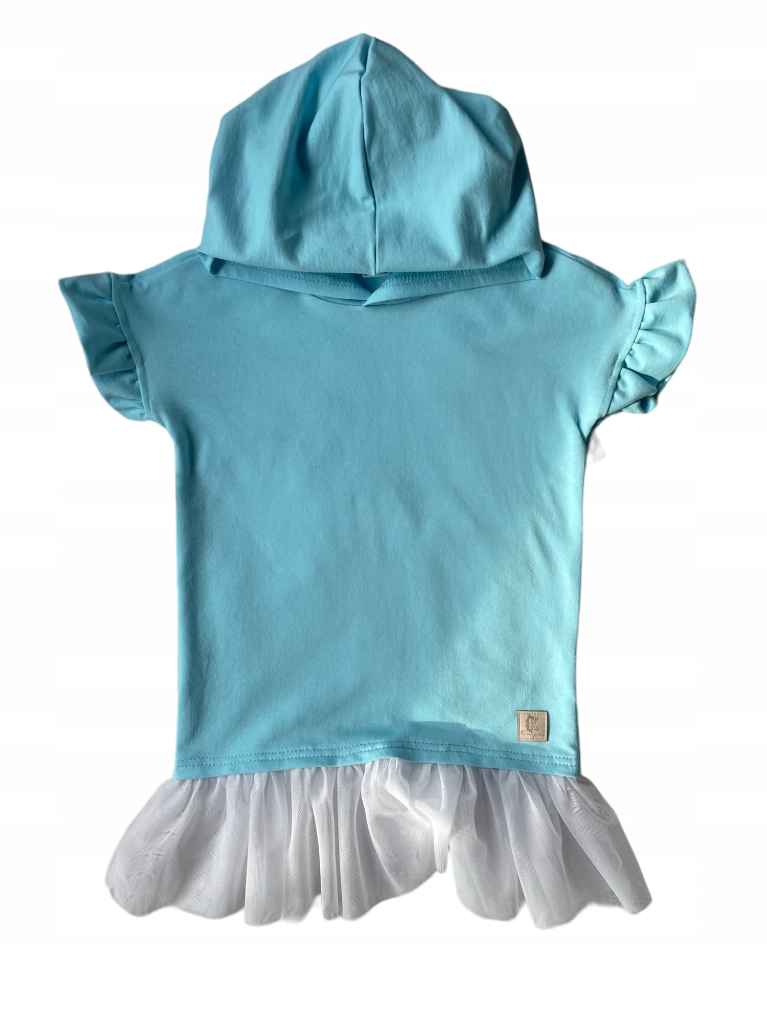 - спортивное платье/туника с капюшоном, декоративными рукавами и нежным фатином внизу
