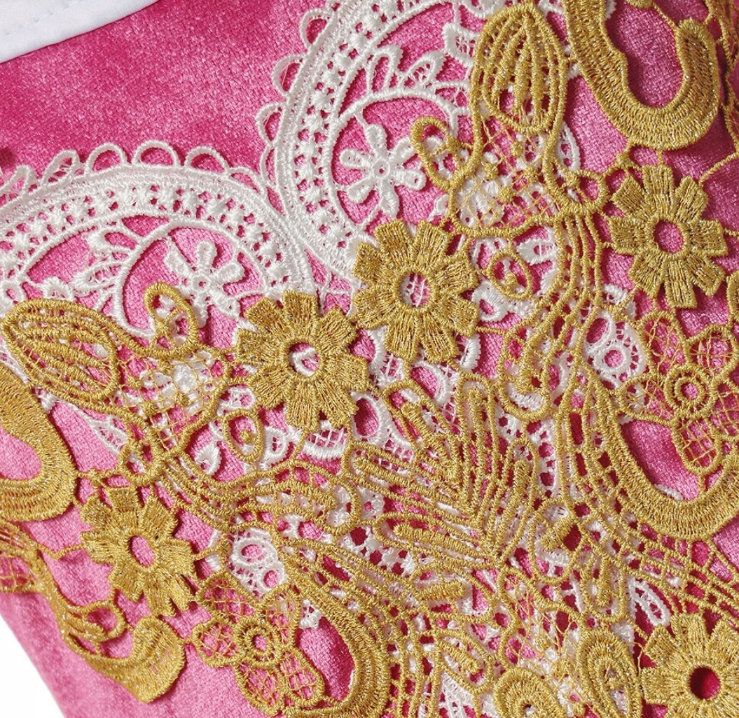 - Многочисленные украшения и декоративные по краям на корсете,