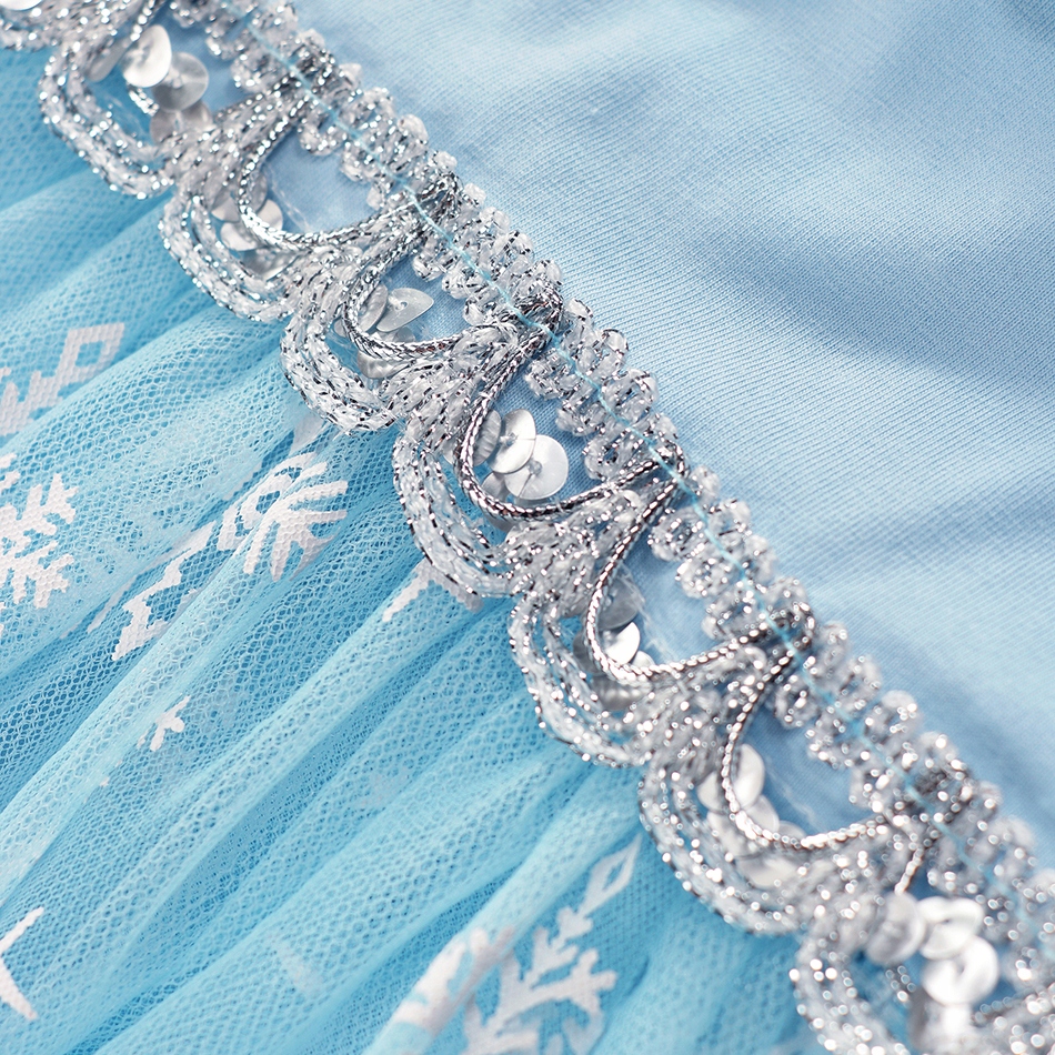- Красивое, уникальное платье, воспроизводимое в сходстве платья, которую носит героиня из фильма «Замороженные 2»,