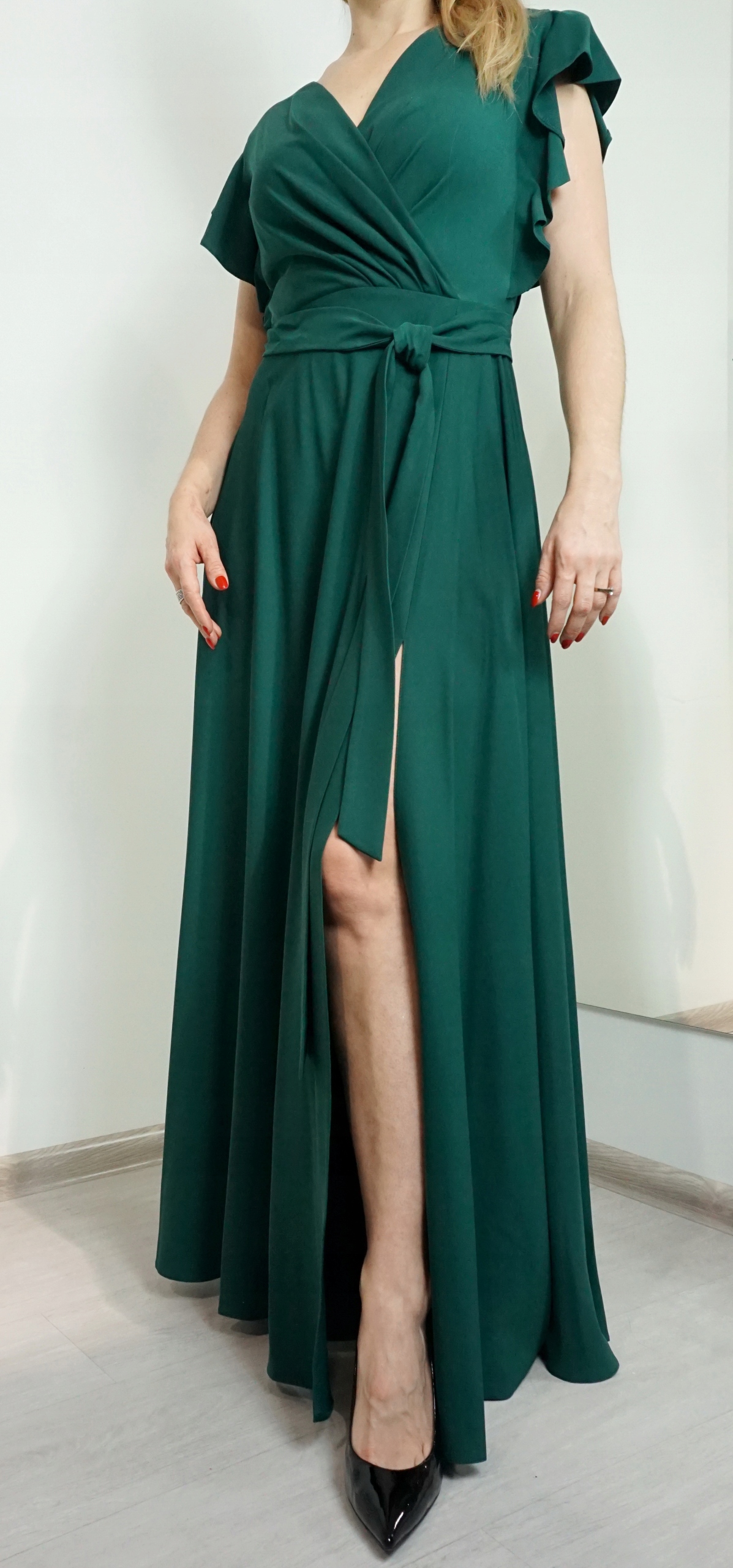 К платью сзади, рядом с молнией, вшит несъемный пояс.