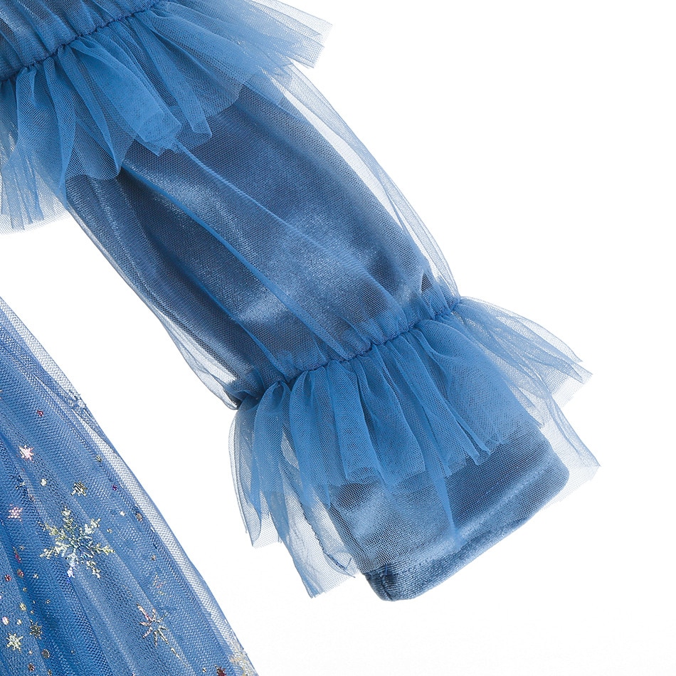 Благодаря точно выбранным цветам, все платье хранится в ледяной эстетике земли - здесь доминируют оттенки синего и темно -синего цвета, которые прекрасно контрастируют с серебряными украшениями. Эти детали, безусловно, восхищаются не только нашими маленькими принцессами, но и их родителями и друзьями