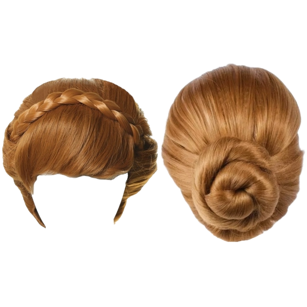 - парик в коричневый с волосами напряженного в булочке, вкрапленным в передней части косички,