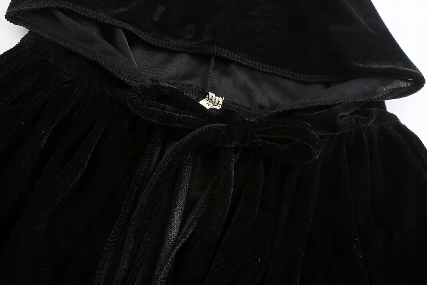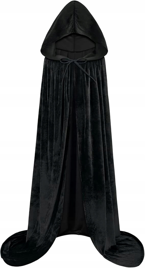 ✅ Длинный черный плащ с капюшоном- b> Это основной элемент наряда, который дает ему темный и таинственный характер. Изготовлен из мягкого толстого велюрового материала , он легкий, приятный на ощупь и очень удобен для износа . Благодаря -связующему под шеей его можно быстро и легко надеть на каждую одежду, что делает маскировку практичной и универсальной. широкий капюшон эффективно покрывает голову и лицо, усиливая призрачный эффект и в то же время не ограничивает движения.
