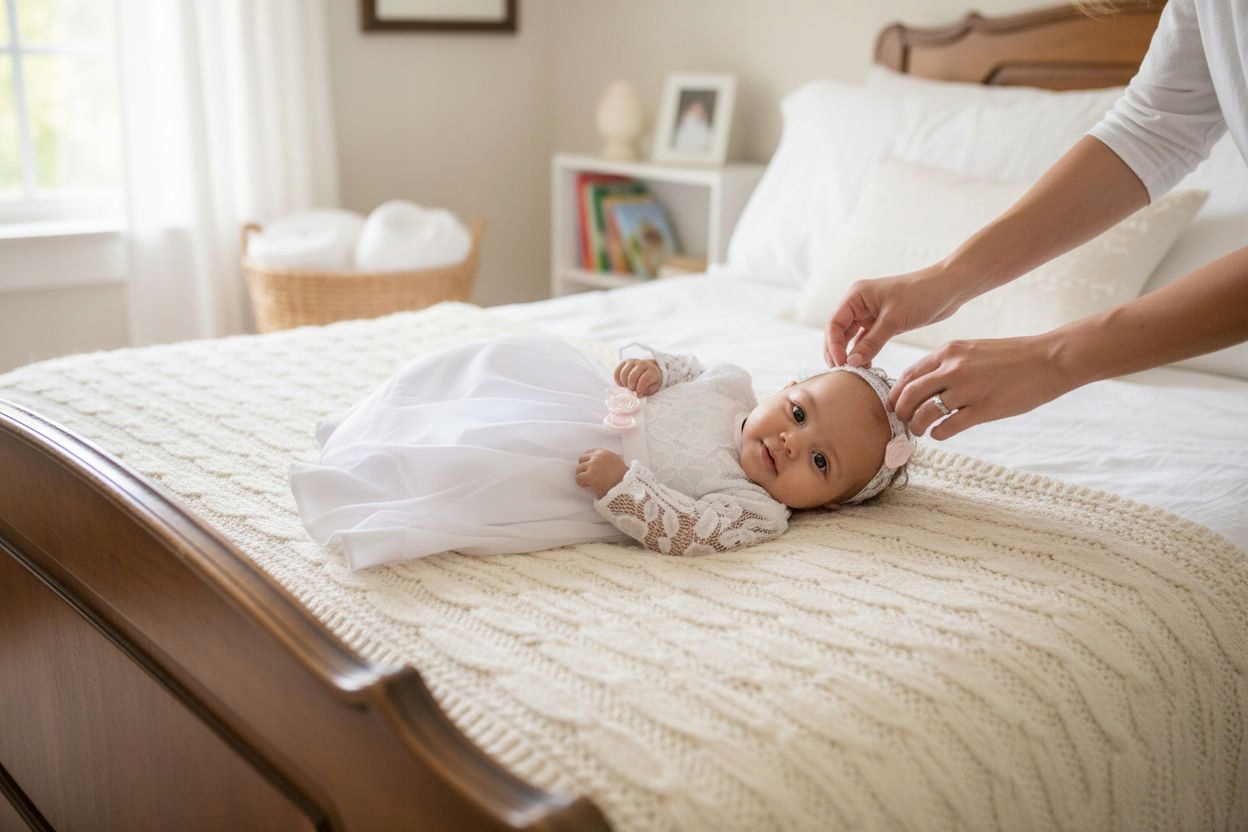 Хлопковое крестильное ПЛАТЬЕ + ПОВЯЗКА НА ГОЛОВУ 62-68