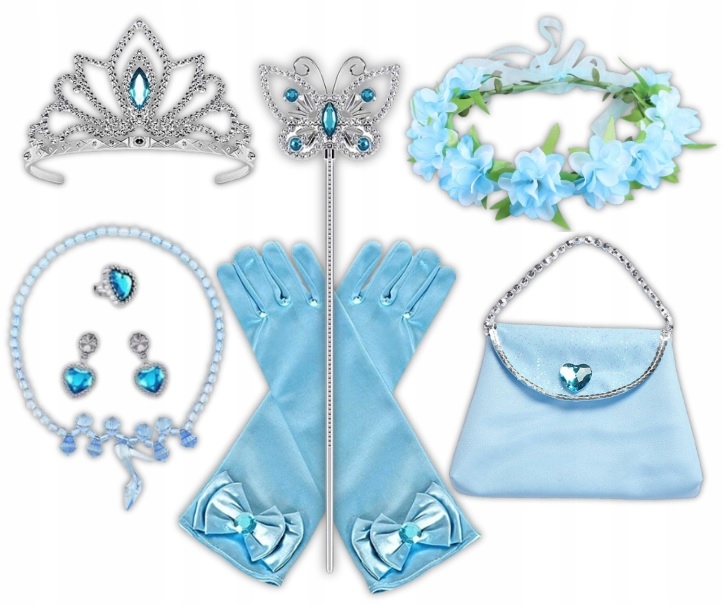 ✨В комплект входят нарукавники, корона, скипетр, ожерелье, серьги, кольцо, перчатки, сумочка и венок.