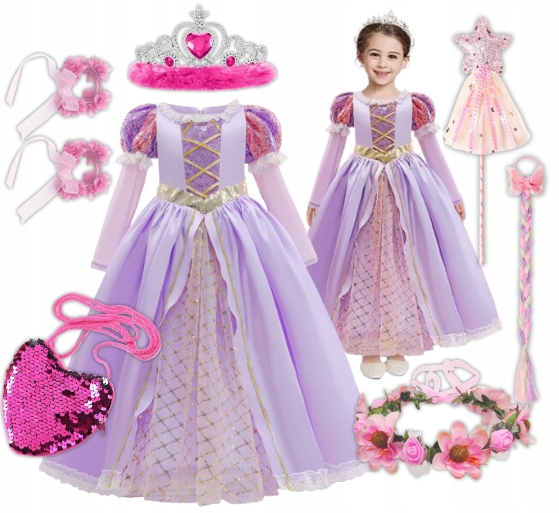 РАПУНЦЕЛЬ ПЛАТЬЕ КОСТЮМ ЗАПУСКНАЯ ПРИНЦЕССА НА ВЫПУСК КАРНАВАЛ 152/158