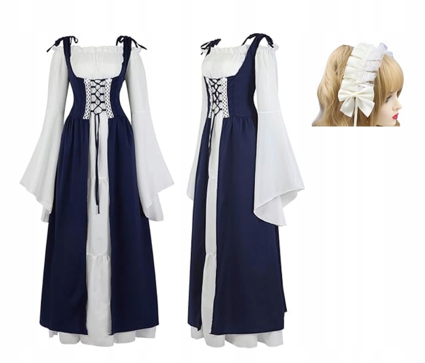 СРЕДНЕВЕКОВОЕ ПЛАТЬЕ РЕНЕССАНС ПЛАТЬЕ ПОМЕСТЬЯ XL КАРНАВАЛЬНАЯ ПОВЯЗКА НА ГОЛОВУ