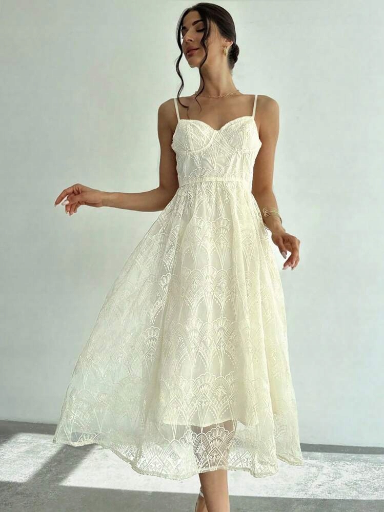 Элегантное платье Ecru с деликатным узором. Модель MIDI прекрасно подчеркивает фигуру. Вырез в стиле обнаруженных рук добавляет очарование. Ремни добавляют легкость и женскую.