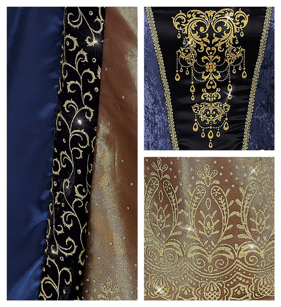 нижняя часть платья, увеличенная с золотой вставкой и золотыми украшениями.