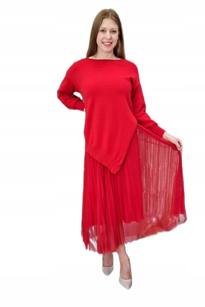 Комплект из красного UNI-платья и свитера Lila