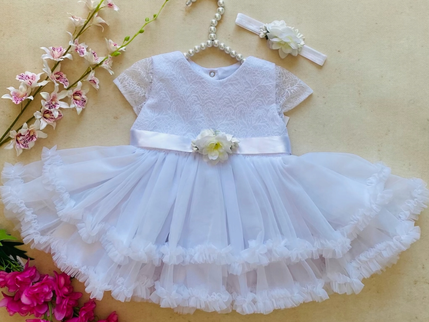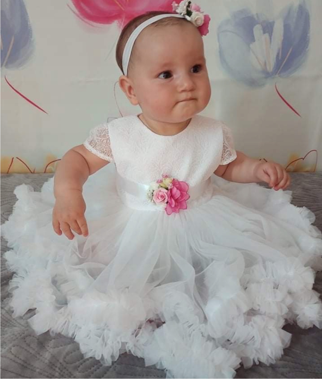 Тюлевое платье Inez — уникальное предложение для особых случаев, таких как крещение, свадьба или фотосессия. Сочетание нежного белого кружева и тюля создает потрясающий эффект. Верх платья Инес выполнен из кружева с мелкими цветочками на хлопковой подкладке. Низ выполнен из двух слоев тюля, отделанного элегантной оборкой, создающей эффект принцессы. Платье застегивается сзади на три удобные кнопки. Платье полностью на хлопковой подкладке.