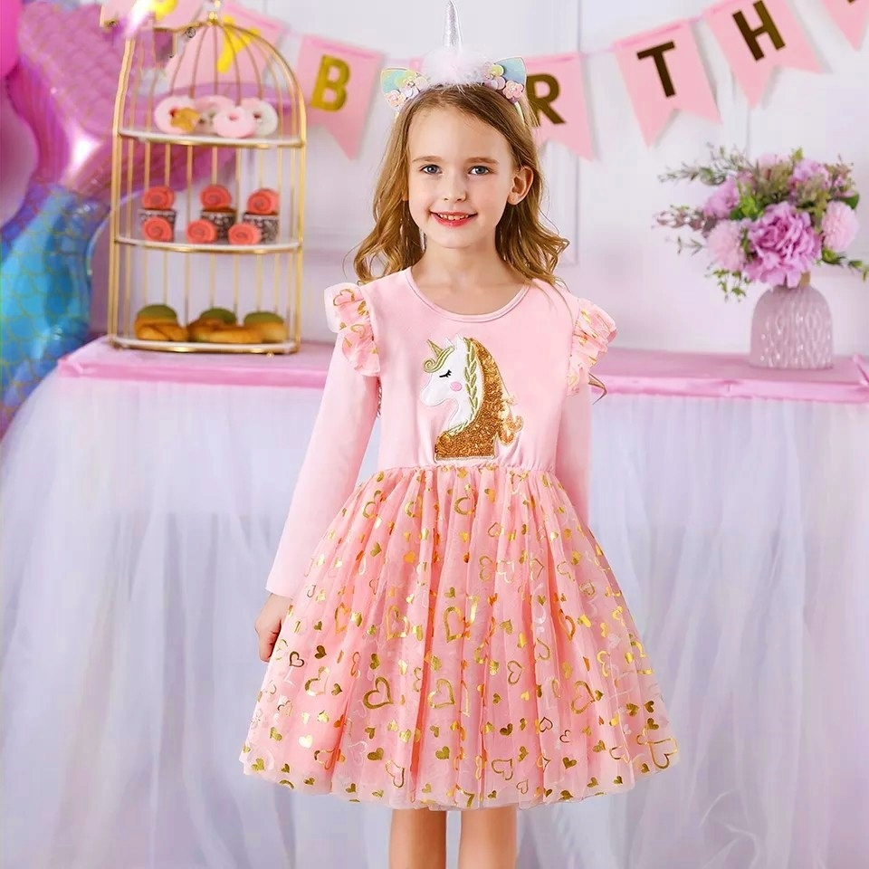 Верх украшен золотым единорогом, низ из тюля с золотыми сердечками.