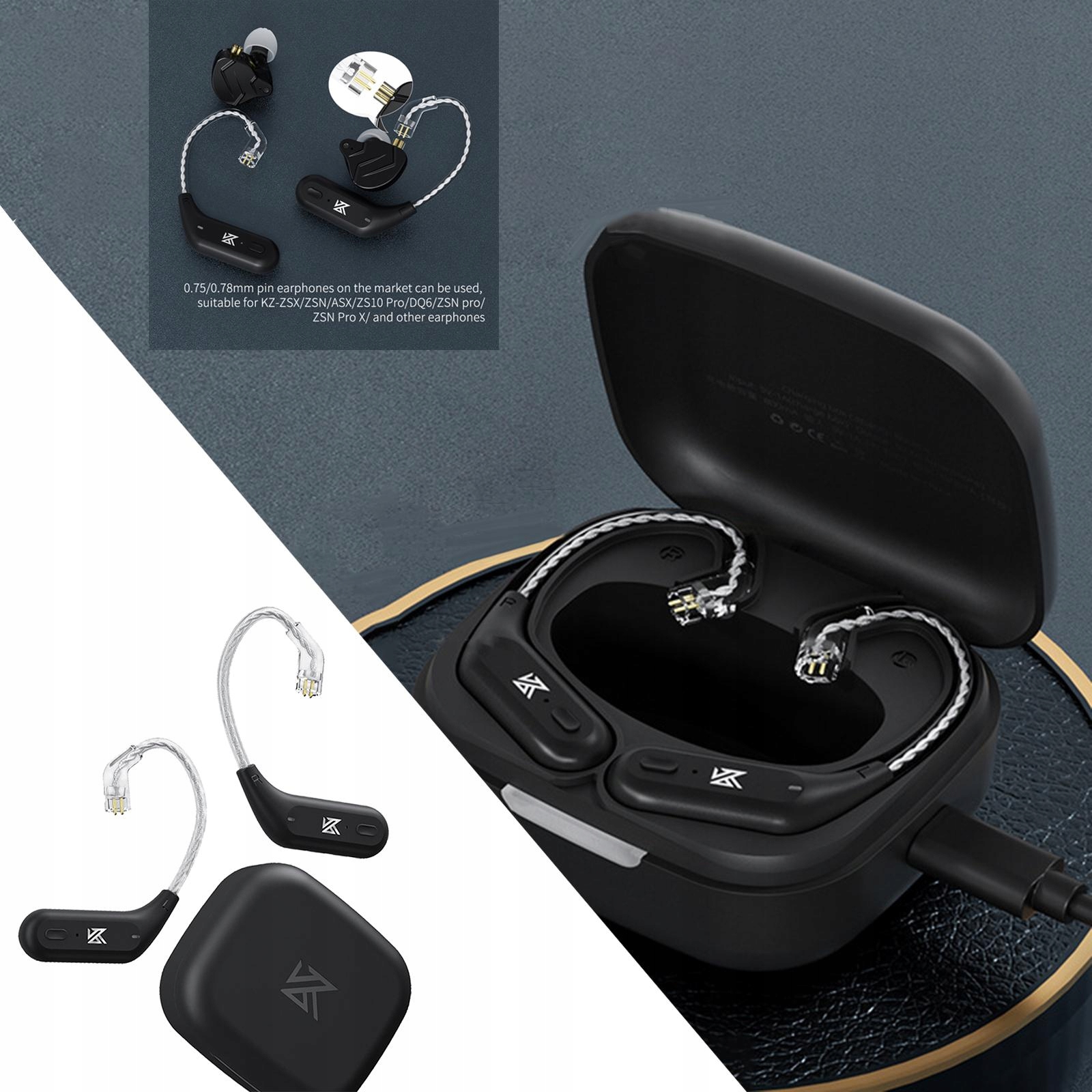 Высокосовместимый ушной крючок: съемный ушной крючок Bluetooth превращает ваши проводные наушники в беспроводные за считанные секунды, избавляясь от оков кабелей. Подходит для наушников с контактами 0,75/0,78 мм, имеющихся на рынке, таких как KZ-ZSX/ZSN/ASX/Pro//ZSN pro/ZSN и других наушников. (Этот продукт предназначен только для ушного крючка для обновления Bluetooth, наушники в комплект не входят.)