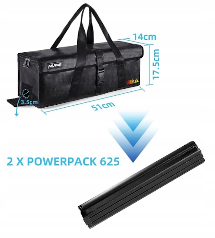 ⚡ Огнестойкий (до 1000°С) – огнестойкий стекловолоконный материал с покрытием гарантирует более безопасную зарядку, транспортировку и хранение аккумуляторов.