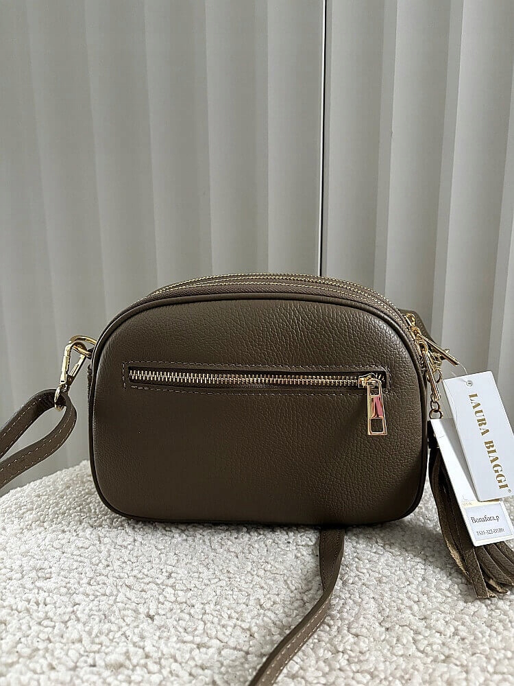Сумка-сундук Laura Biaggi с тремя отделениями, кожа с серо-коричневой замшей