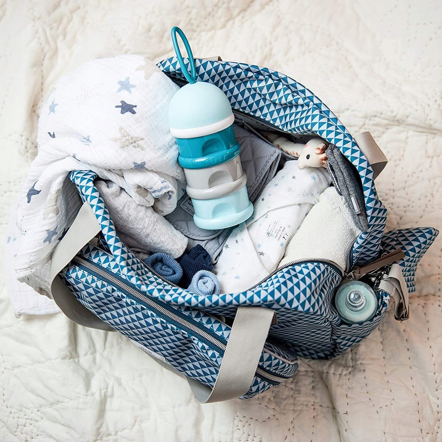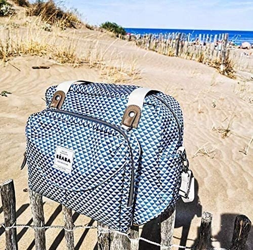 Чрезвычайно функциональная и дизайнерская сумка для мам от французского бренда BEABA. В него можно легко поместить необходимые детские аксессуары и удобно их организовать. Сумка выполнена в серых тонах, имеет уникальный треугольный узор и элегантный дизайн, поэтому является прекрасным женственным аксессуаром. В нее также легко можно упаковать свои вещи: телефон, ручки или ключи — рядом с многочисленными внутренними отделениями вы найдете бирки с рекомендациями по их использованию.
