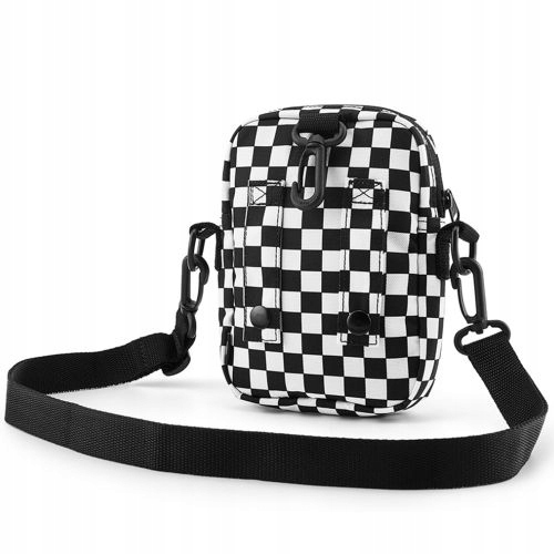 Сумка через плечо Vans New Varsity отличается черно-белым рисунком в шахматном порядке, внешними карманами на молнии, застежкой на пряжку на внешнем кармане, регулируемым ремнем и петлями для крепления к ремню. .