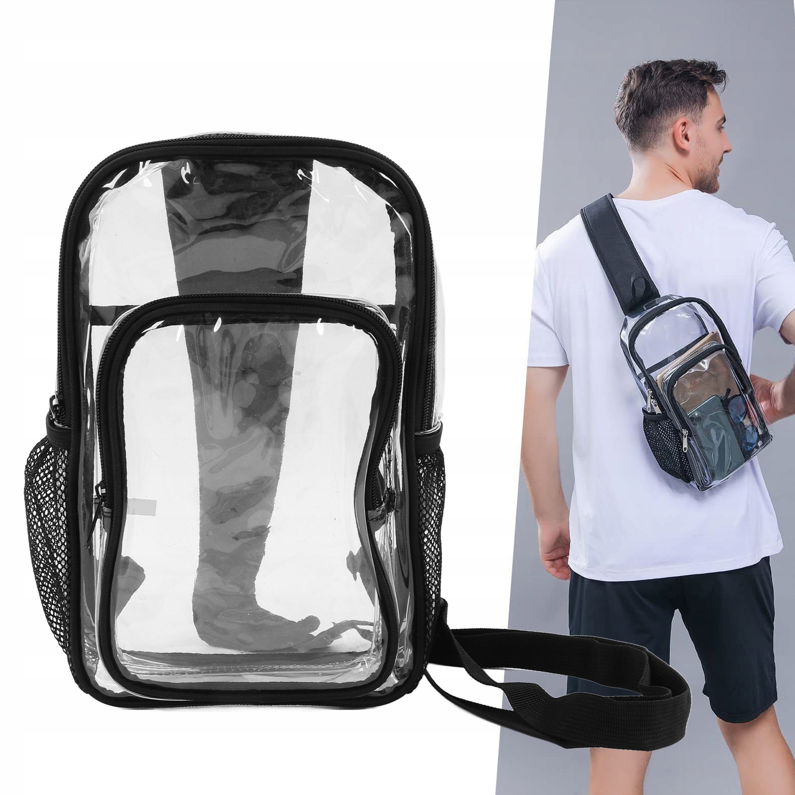 1. Подходящий размер: основное отделение с двойной молнией имеет высоту 12 дюймов, длину 6,5 дюйма и ширину 3 дюйма. Передний карман на молнии подходит для хранения планшета, мобильного телефона, мобильного источника питания и т. д. В комплект входят дополнительные сетчатые сумки для бутылок с водой или других предметов первой необходимости в дороге. 2. Материал ПВХ: прозрачный ПВХ, эффективный водонепроницаемый, защищает содержимое сумки от воздействия дождя. Дождливые дни также идеальны для путешествий. 3. Применение: модный, портативный, подходит для работы, выходных, шоппинга, путешествий, пеших прогулок, кемпинга, прогулок с собаками, езды на велосипеде, езды на мотоцикле и других видов активного отдыха. 4. Модная версия: модная и стильная версия, видимый прозрачный материал. Это модная нагрудная сумка, которая лучше сочетается с вашей одеждой. 5. Удобство передвижения. Прозрачные сумки одобрены для использования на контрольно-пропускных пунктах на стадионах и в других местах, чтобы ускорить проверку безопасности на входе.