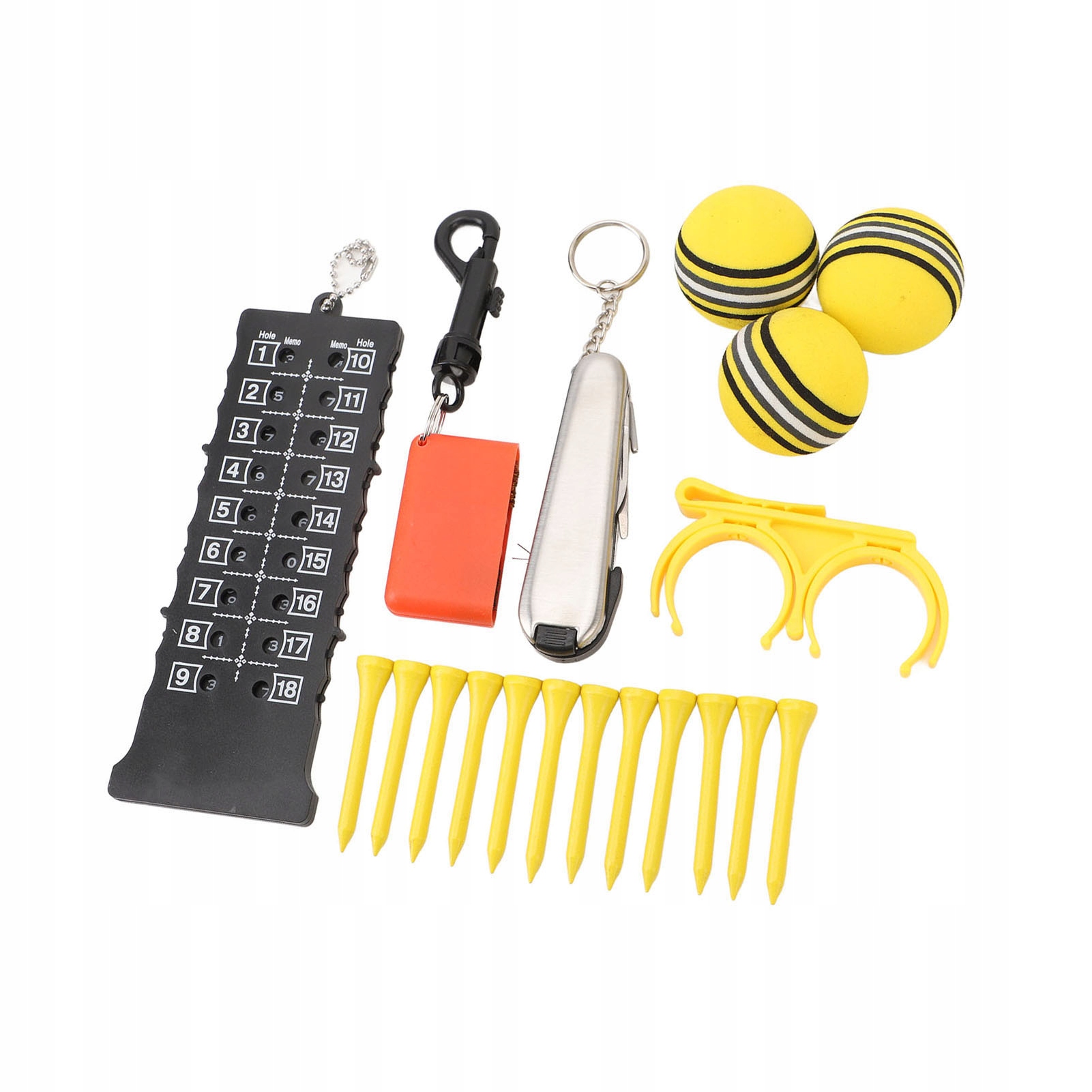 Сумка для аксессуаров для гольфа 6 в 1 из искусственной кожи с тройниками, инструмент для очков, зажим для мяча, щетка для хранения подарочной сумки для предметов первой необходимости для гольфа, желтый