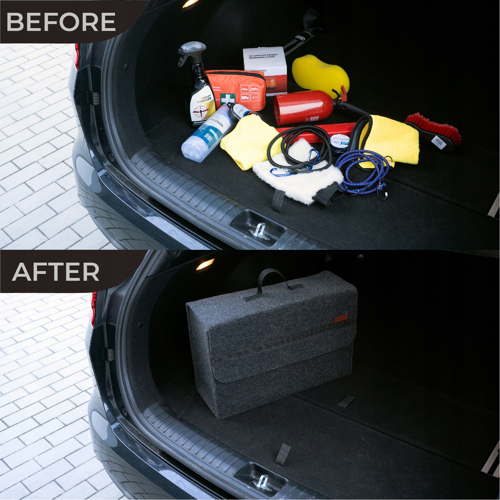 Органайзер, который можно установить в багажник. Помогает содержать ваш автомобиль в порядке. Подходит для автомобильных аксессуаров, таких как масло и жидкость для омывателя ветрового стекла. Легкая сборка. Легко поддерживать чистоту. Очень эстетичный внешний вид. Приятный на ощупь.