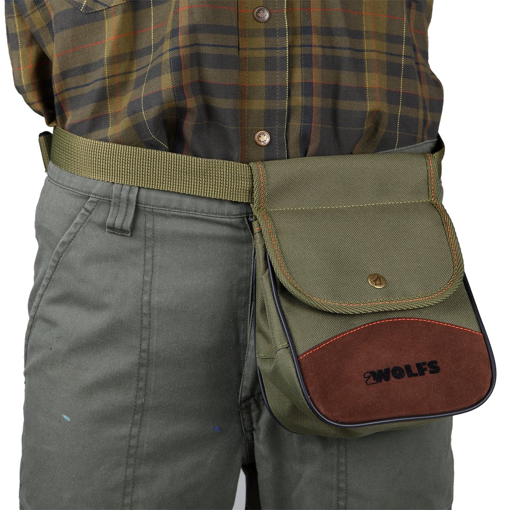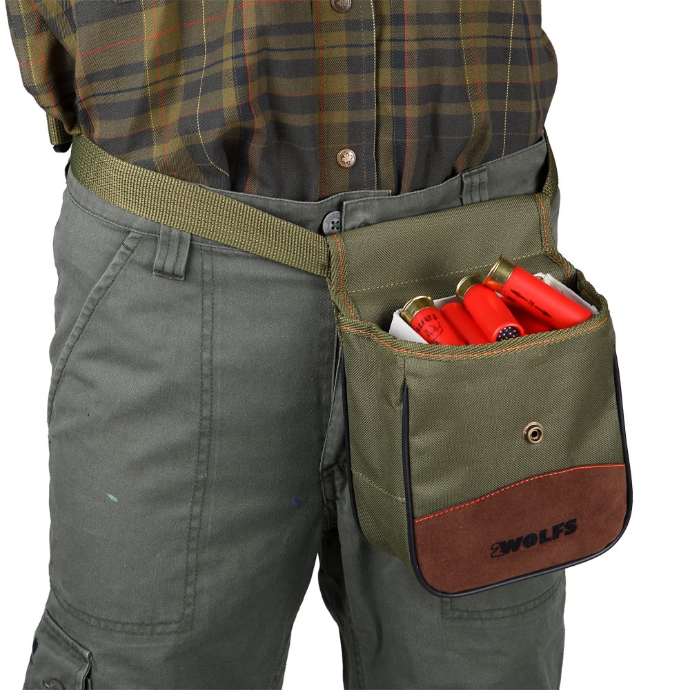 Поясная сумка для ящика с дробовыми патронами, изготовлена из кодуры, усилена зеленой окантовкой по бокам. Дополнительно в комплект входит ремень, позволяющий закрепить сумку на бедре. Он идеально подходит в качестве дозатора лакомств, когда вы укладываете собаку.