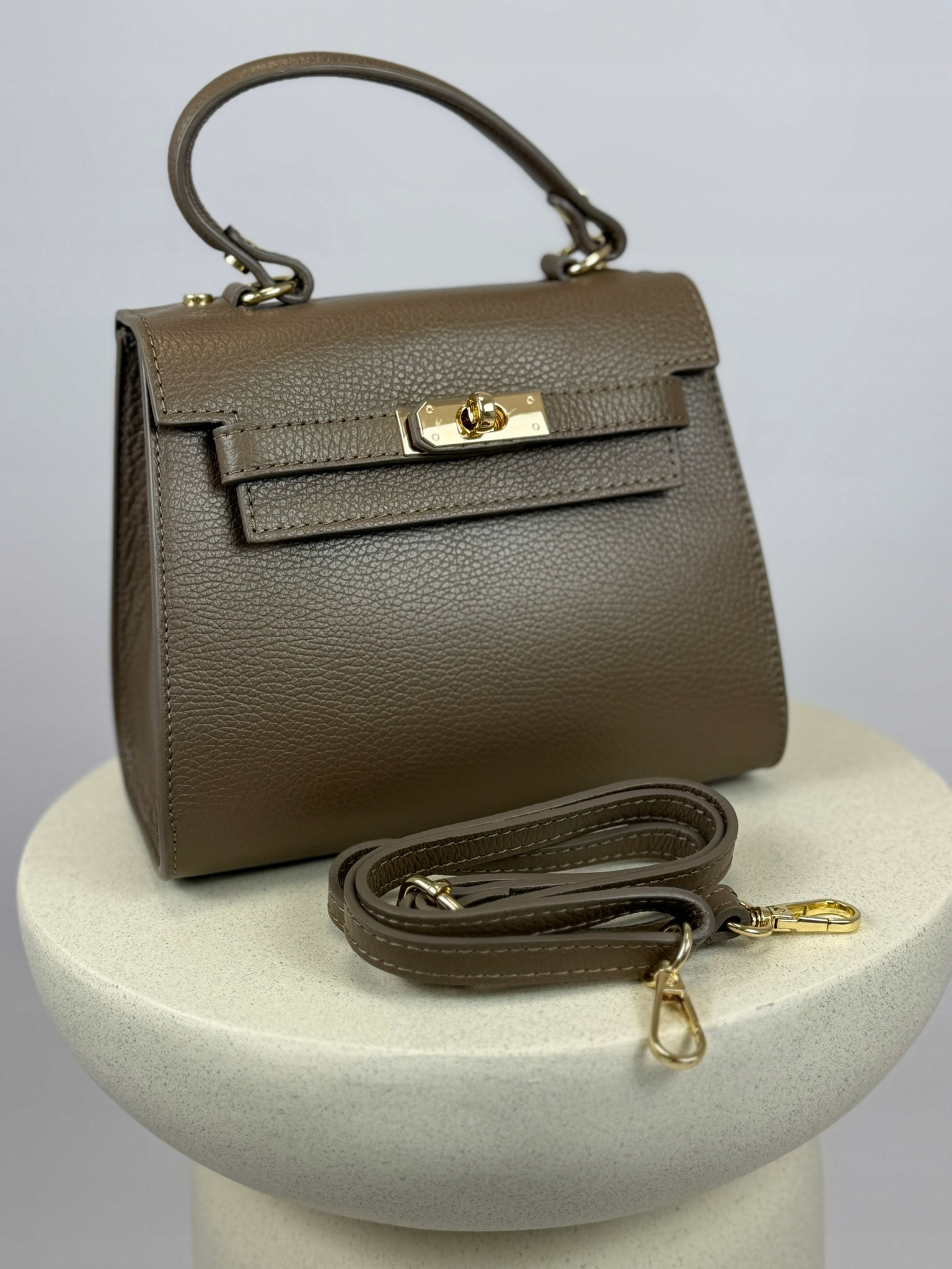 СУМКА ДЛЯ ДАТЫ серо-коричневая ИТАЛЬЯНСКАЯ КОЖАНАЯ СУМКА ELALOSA