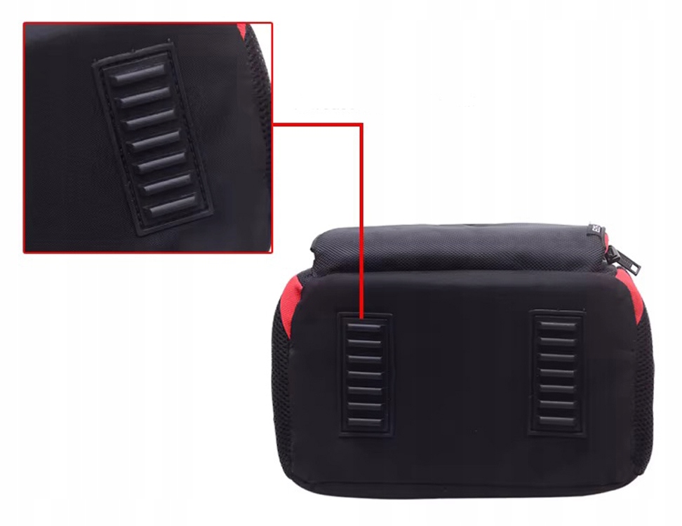 Благодаря съемной перегородке основное отделение можно свободно регулировать (пространство можно разделить на 1 или 2 части). Карманы идеально подходят для ношения основных аксессуаров, таких как: зарядное устройство, дополнительные аккумуляторы, фильтры, карты памяти и т. д.
