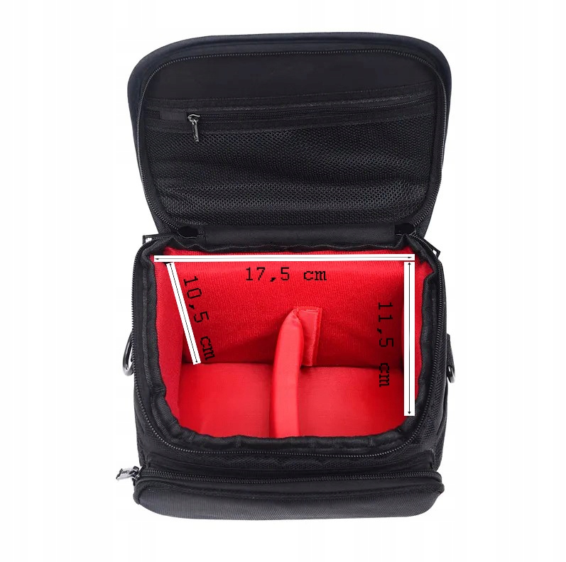 Благодаря съемной перегородке основное отделение можно свободно регулировать (пространство можно разделить на 1 или 2 части). Карманы идеально подходят для ношения основных аксессуаров, таких как: зарядное устройство, дополнительные аккумуляторы, фильтры, карты памяти и т. д.