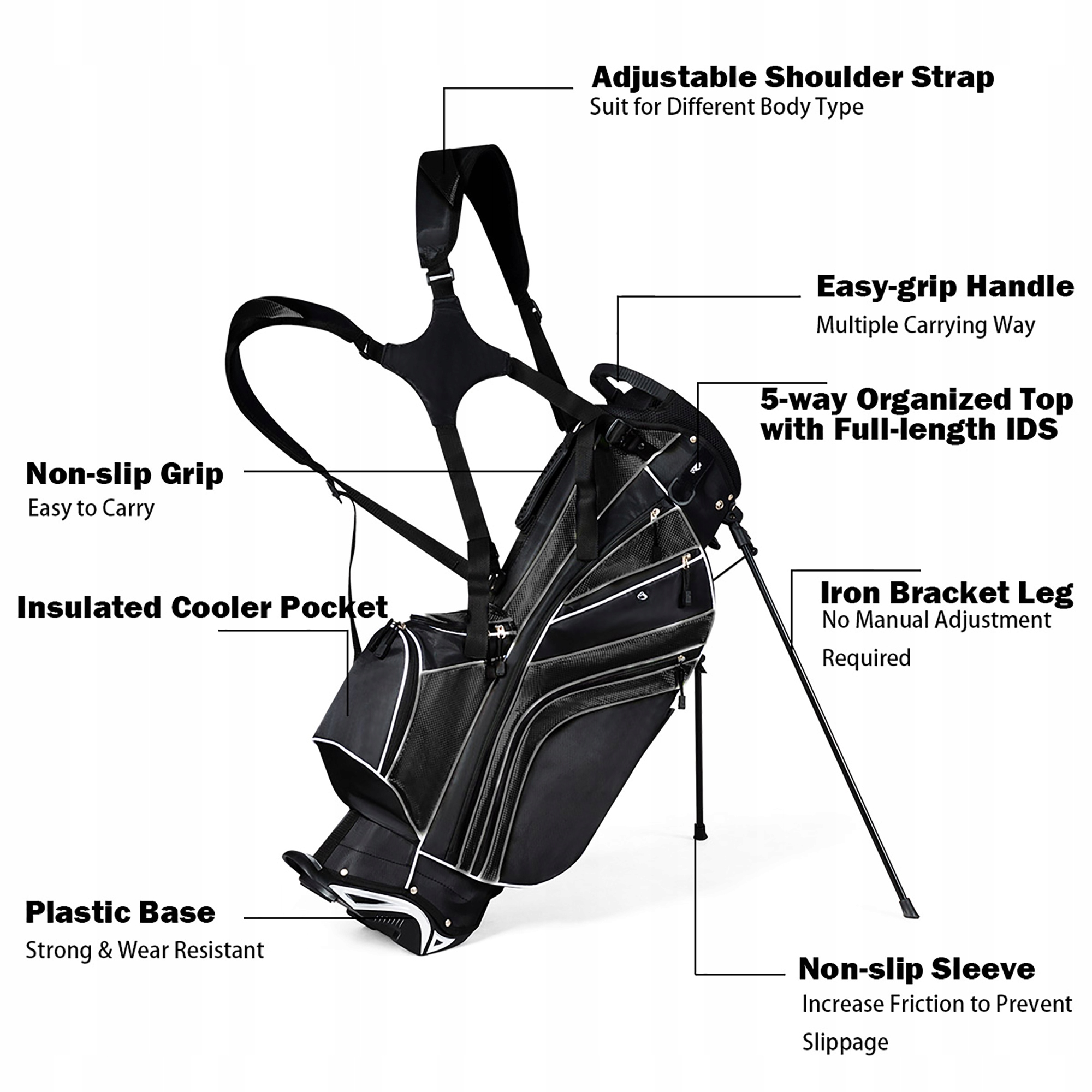 Большая емкость - сумка очень вместительна и предлагает очень большое место для хранения. Он имеет большой основной отсек для хранения с отсеками для гольфа и множеством дополнительных карманов (включая карманы для шариков и полотенец)