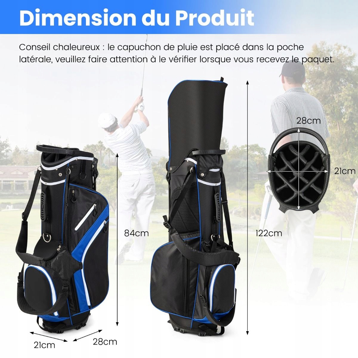 Верхний органайзер с 14 отделениями: Благодаря 14 отделениям эта сумка для гольфа поможет организовать все необходимые клюшки и защитить их от царапин и спутывания. Встроенная ручка позволяет легко поднимать сумку для гольфа.