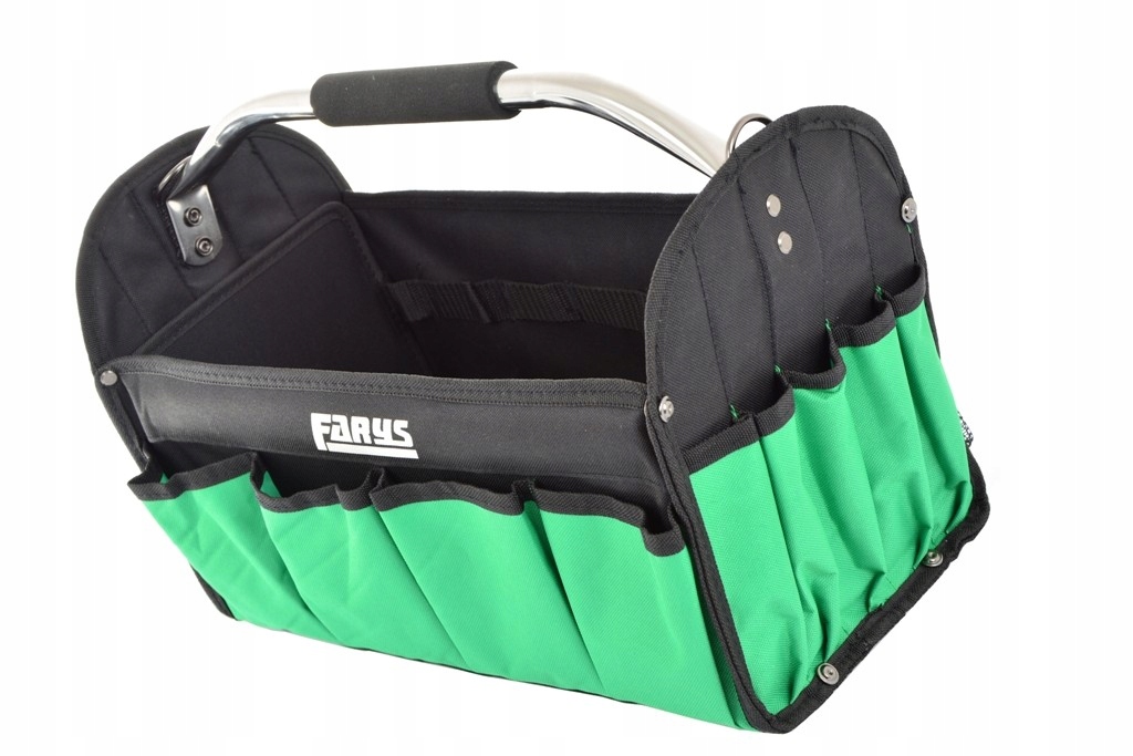 Наша удобная открытая сумка для инструментов с металлической нескользящей ручкой позволяет иметь быстрый доступ ко всем необходимым материалам, аксессуарам и инструментам.