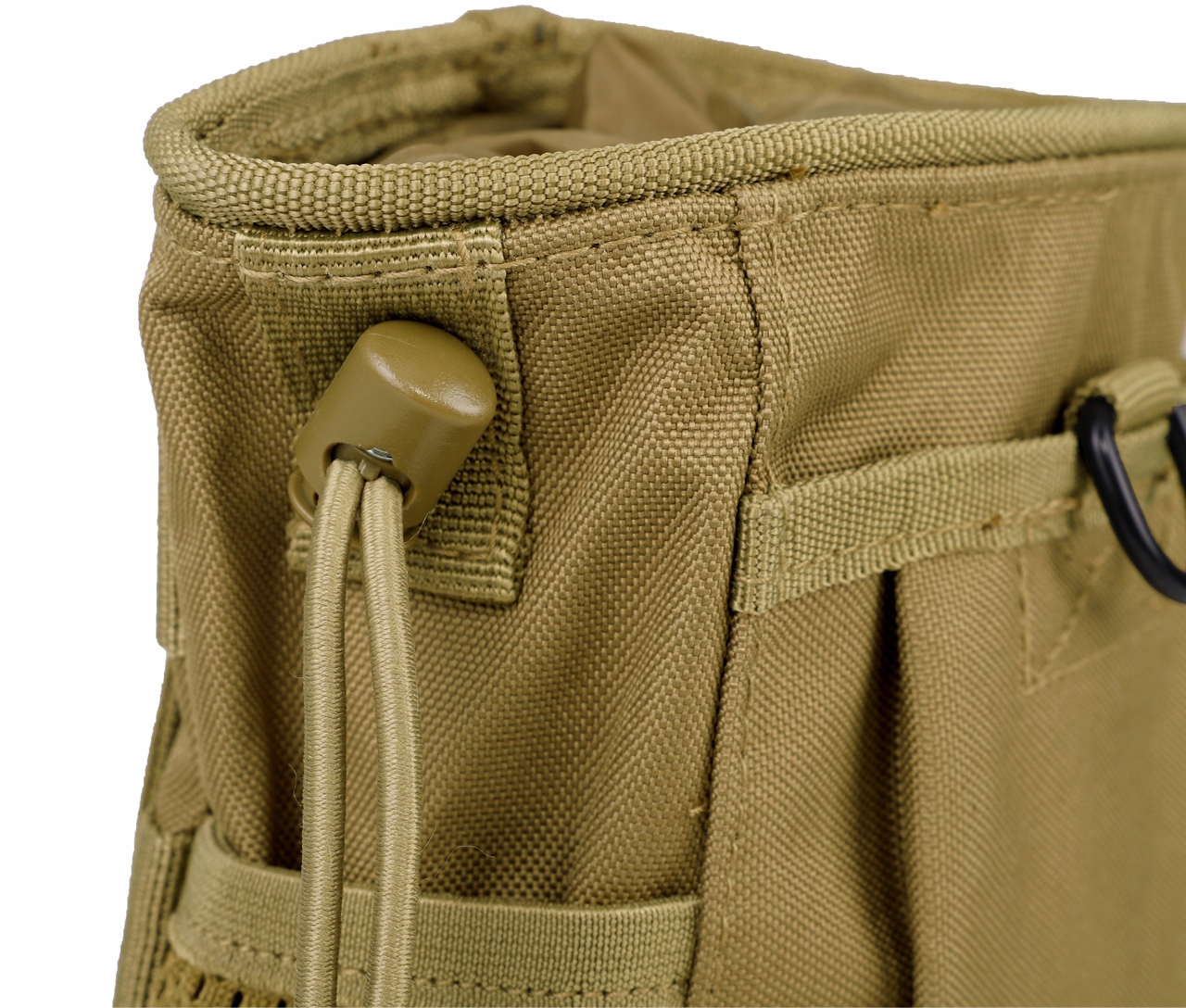 Застежка изготовлена из Лямки Молле оснащены металлическими защелками, что позволяет крепить карманы к модульным панелям, к рюкзаку или ремню. Вертикальные лямки крепления усилены, что позволяет крепить сумку прямо на обычный ремень.