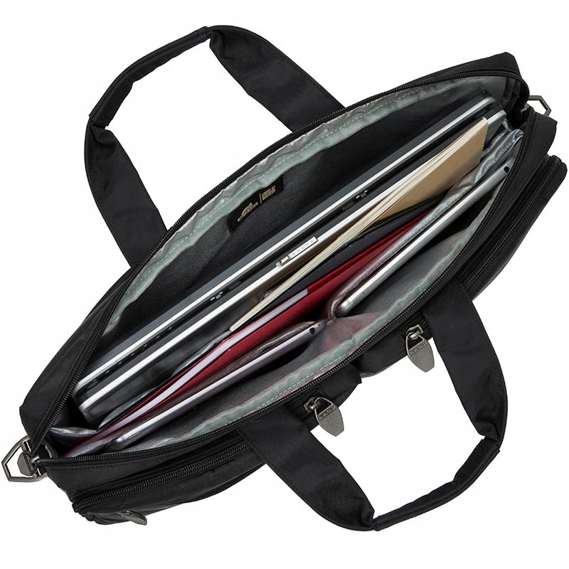 Сумка имеет основное отделение со специальным отделением для 16-дюймового ноутбука и 10,1-дюймового планшета. Сзади имеется дополнительный отсек на молнии, куда можно разместить необходимые аксессуары. Использование двойных слайдеров, помимо эстетической ценности, обеспечивает быстрый доступ к содержимому. Мягкие мягкие ручки повышают комфорт использования, а съемный ремень позволяет хранить сумку в чемодане на колесиках. Высокое качество используемых материалов в сочетании с невысокой ценой делает изделие доступным для людей, ведущих разный образ жизни. Сумка может сопровождать вас в путешествии или дополнять ваш повседневный наряд. Доступен в черном цвете.