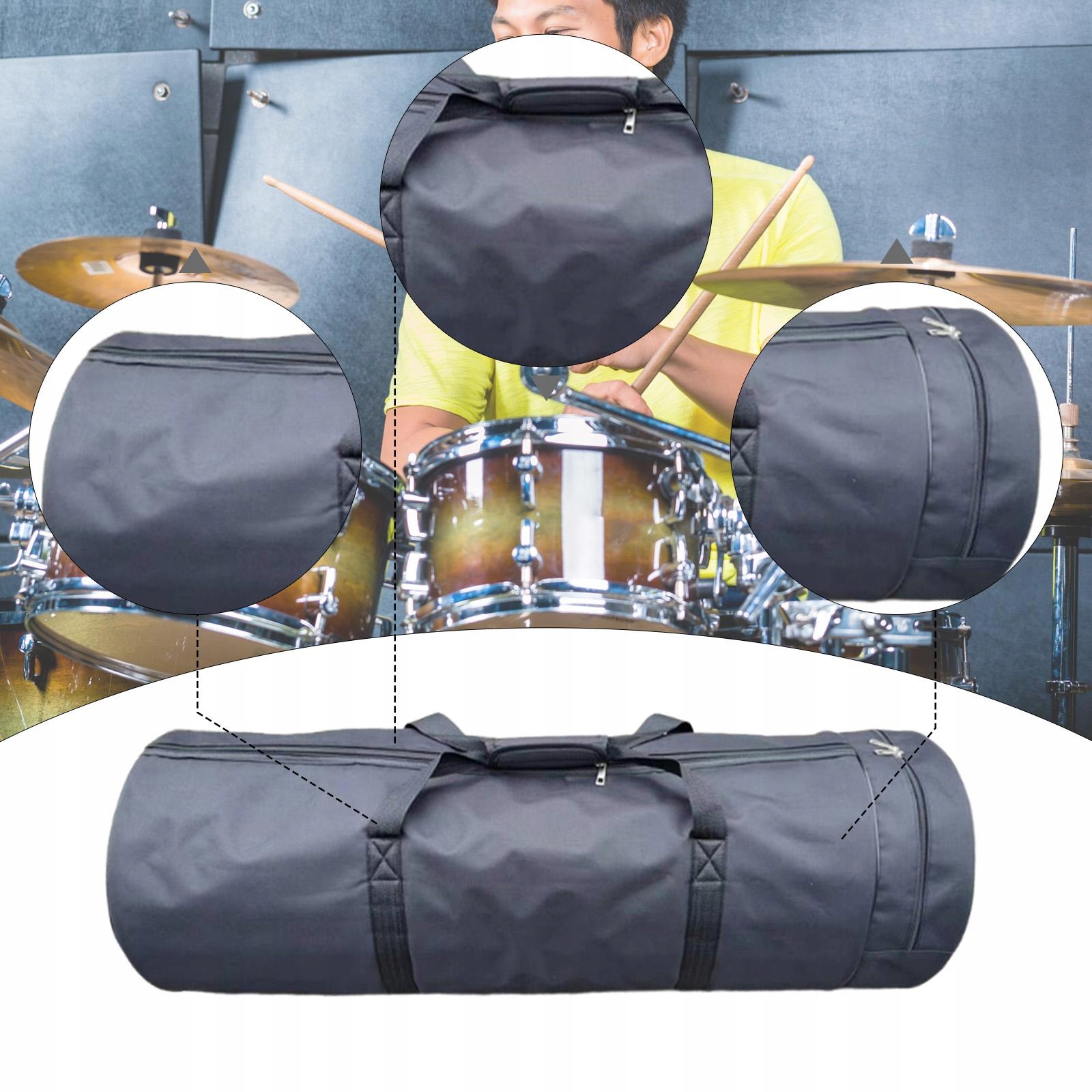 [Удобные варианты переноски]: этот чехол для переноски барабанного оборудования, оснащенный прочной ручкой, обеспечивает удобную переноску. Оснащен застежкой-молнией для бесперебойной работы.