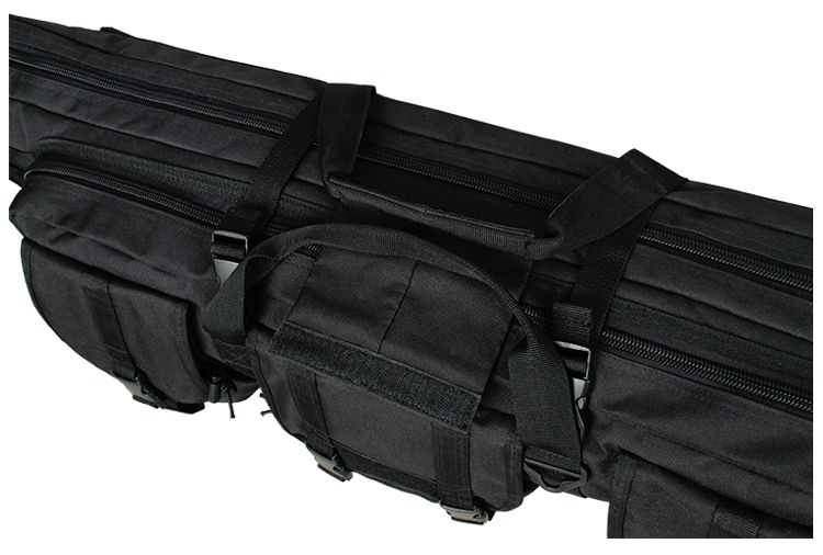 Большой винтовочный отсек имеет внутреннюю систему крепления, застегивающуюся на липучке, которая предотвращает перемещение оружия. Внешние стенки заполнены толстым и жестким пенопластом, защищающим оружие от повреждений при транспортировке и предотвращающим искажение прицелов и оптики.