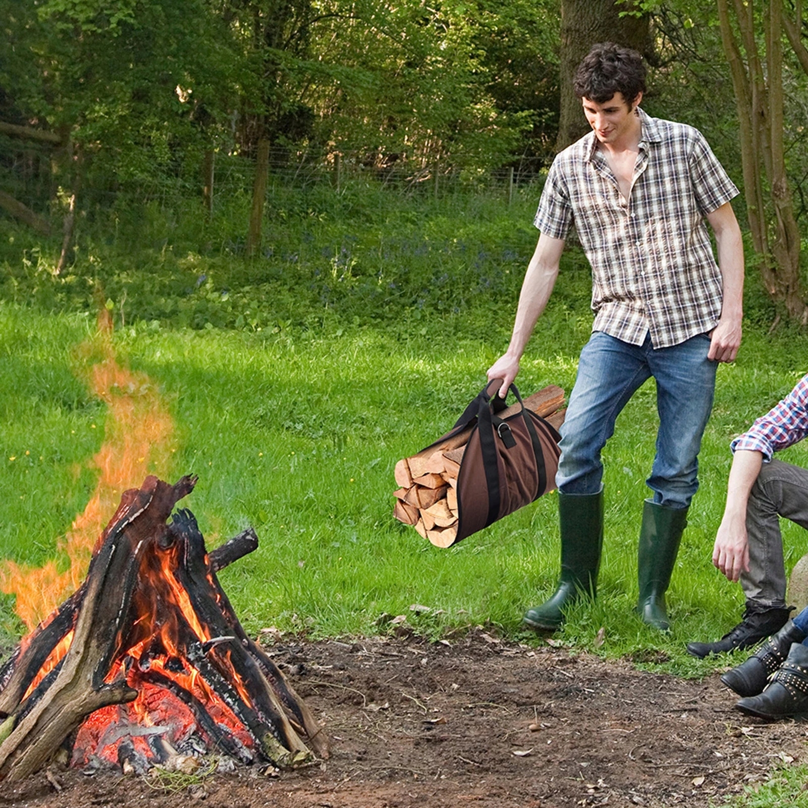 Корзина для дров имеет ручку и регулируемый плечевой ремень, который удобно носить на плече двум людям. , тыльной стороной руки и двумя людьми.