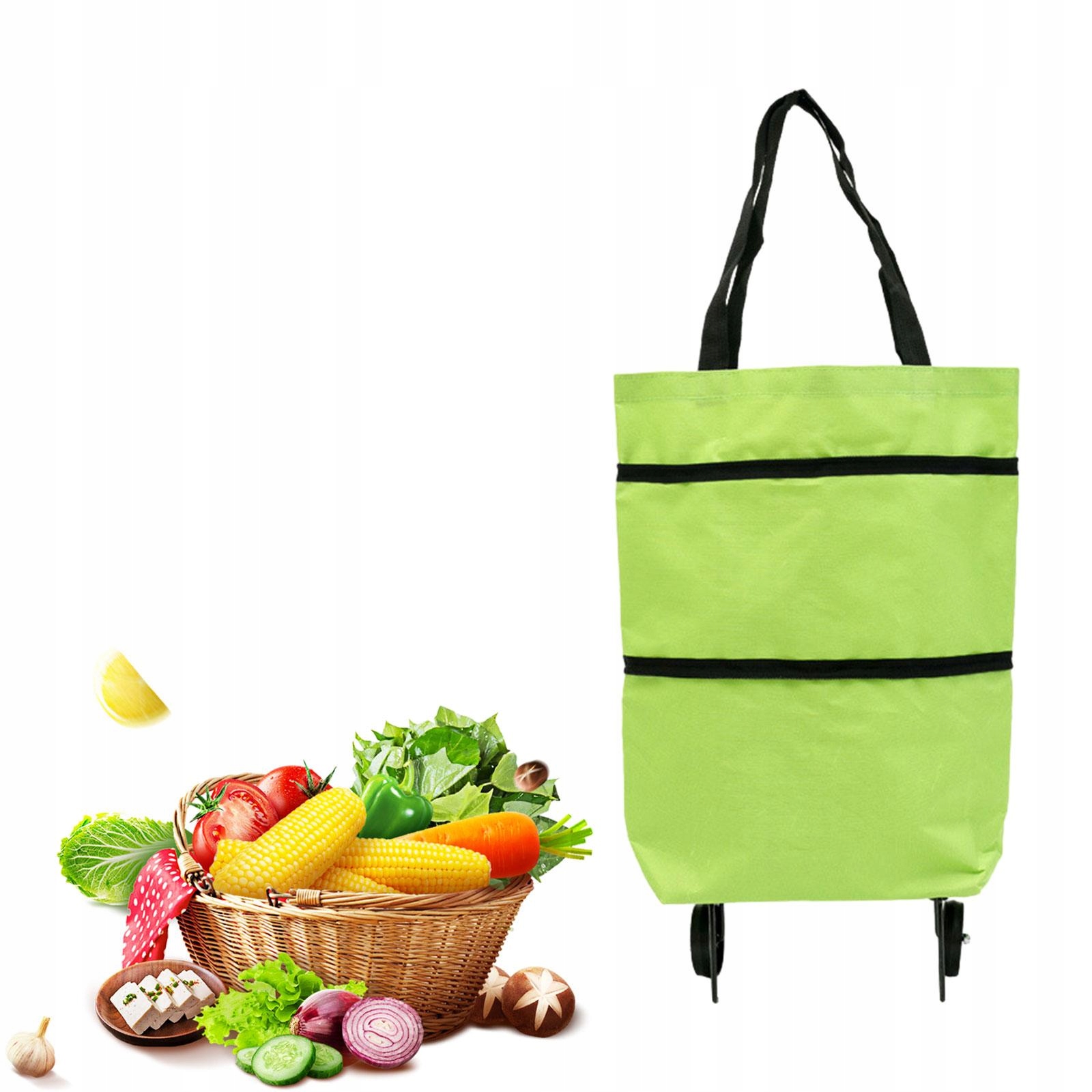 Сумка для покупок з коліщатками, розбірна багаторазова корзина для овочів, зелена