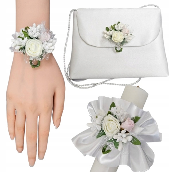 Трехслойная прямоугольная сумка на булавке, изготовленная из первоклассного свадебного атласа, жесткого тюля и жесткой ткани CAMBEL. Идеально подходит к наряду для причастия.