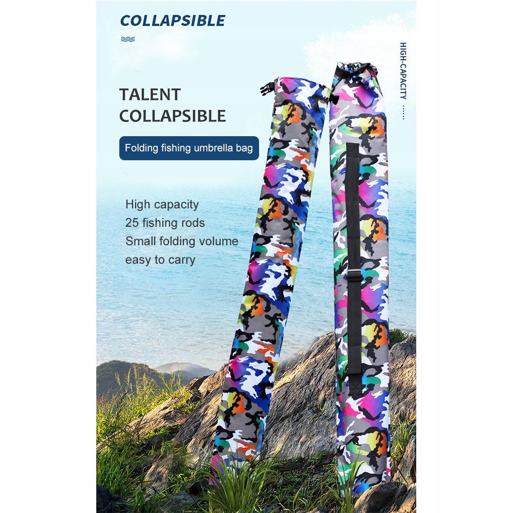 1. Изготовлен из зашифрованной ткани Оксфорд, водонепроницаемой и проклеенной внутри. 2. Устойчив к царапинам, не протекает, предотвращает намокание предметов водой при переноске. 3. Регулируемый плечевой ремень, можно носить вручную, можно носить на одном плече, экономить труд и практично. 4, складная конструкция, небольшое пространство для хранения, складная застежка, высоту можно свободно регулировать. 5, размер: около 145*22 см, конструкция большой емкости, может использоваться для удочек, сетей, рыболовных зонтов, кронштейнов и других предметов.