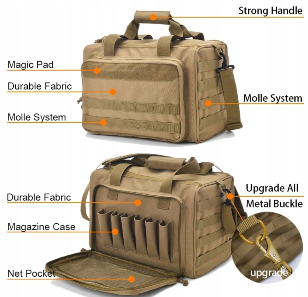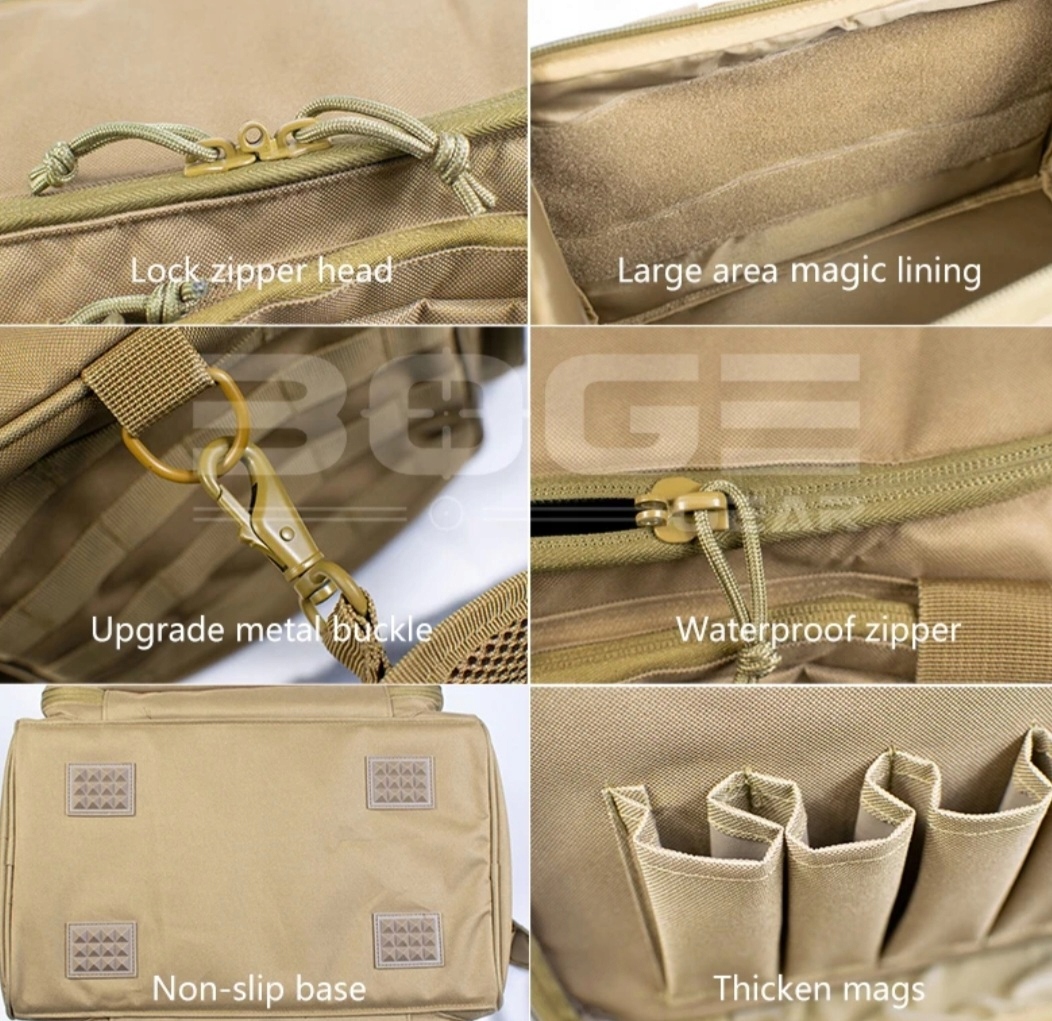 - Deluxe Tactical Daring мешок из полиэфирной ткани с высокой плотностью очень прочный и водонепроницаемый. Построенный из толстой высокой подкладки, сумка обеспечит твердую защиту огнестрельного оружия и аксессуаров для пистолета. Система Dodieko Molle позволяет вам установить необходимые аксессуары,